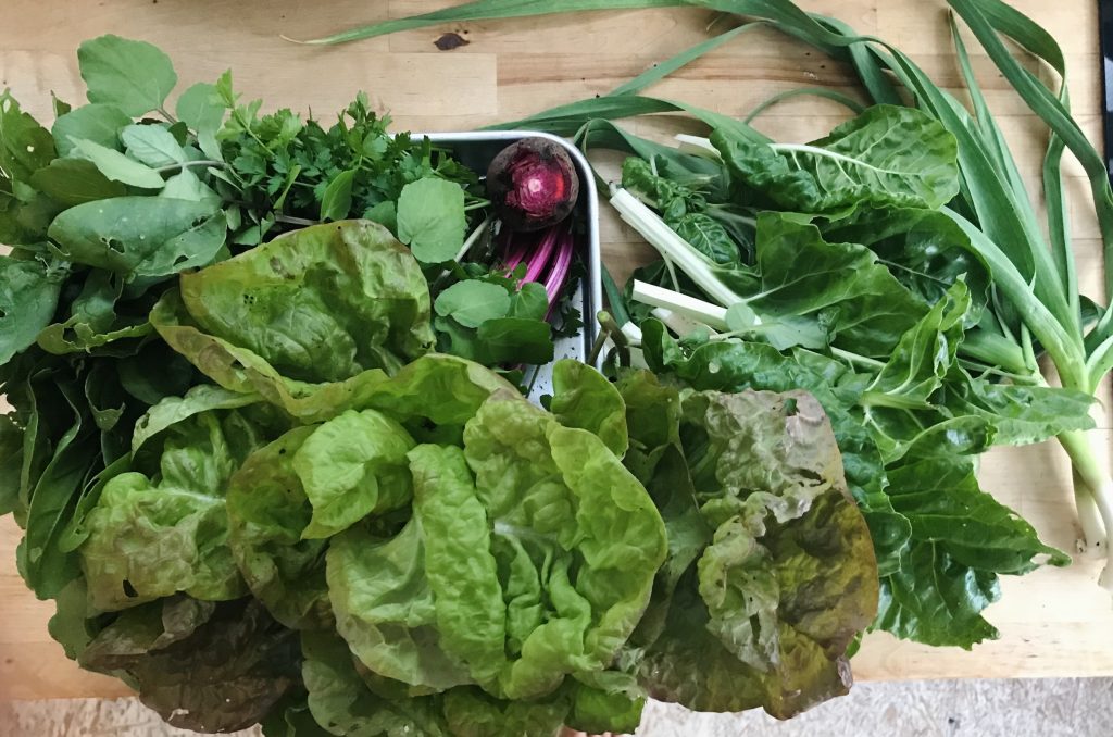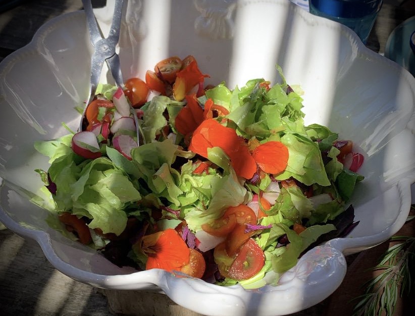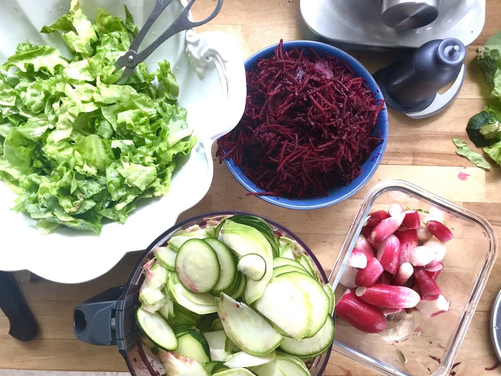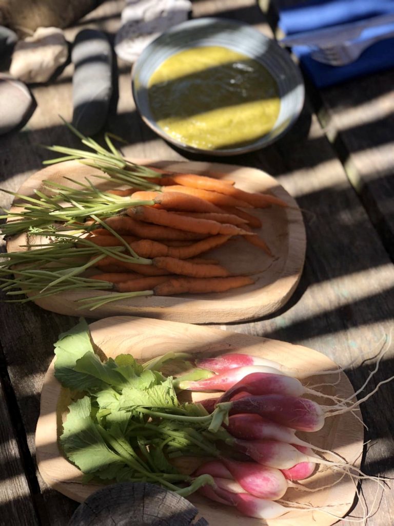 rabanetes e cenouras e outros, como talos de aipo, em maionese de ervas aromáticas (receita aqui)