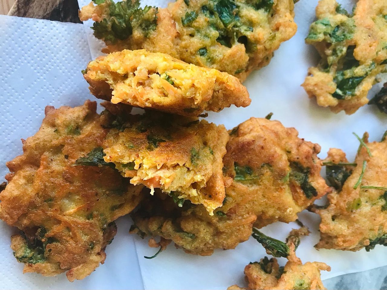 Numa frigideira coloca o óleo ou azeite a ferver. Coloca uma colher da massa a fritar até dourar, depois vira as pakoras para dourar do outro lado e retira do lume para um prato com papel de cozinha para escorrer.